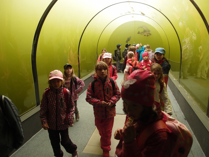 Dalším zážitkem byla nová expozice ,,Živá voda“ . Žáci měli možnost vstoupit pod hladinu rybníka a prohlédnout si velice z blízka naše sladkovodní ryby.