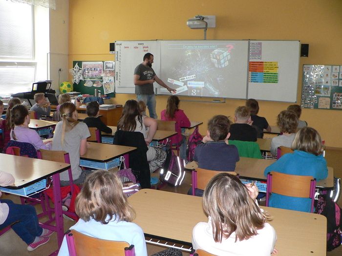 března přijel do školy lektor pan Kotouček z občanského sdružení Zdravá mládež, který měl pro žáky 4. a 5. třídy připravenou besedu na téma „ Kyberšika“. Povídal si s dětmi o nebezpečí a nástrahách internetu a o dopadu zveřejňování informací na sociálních sítích.