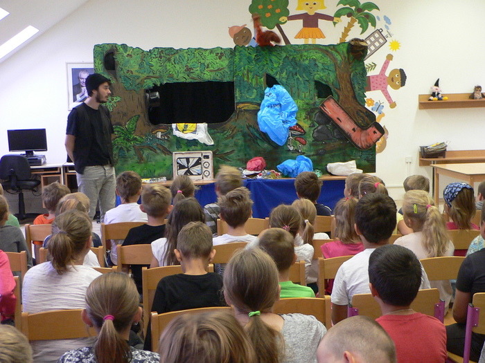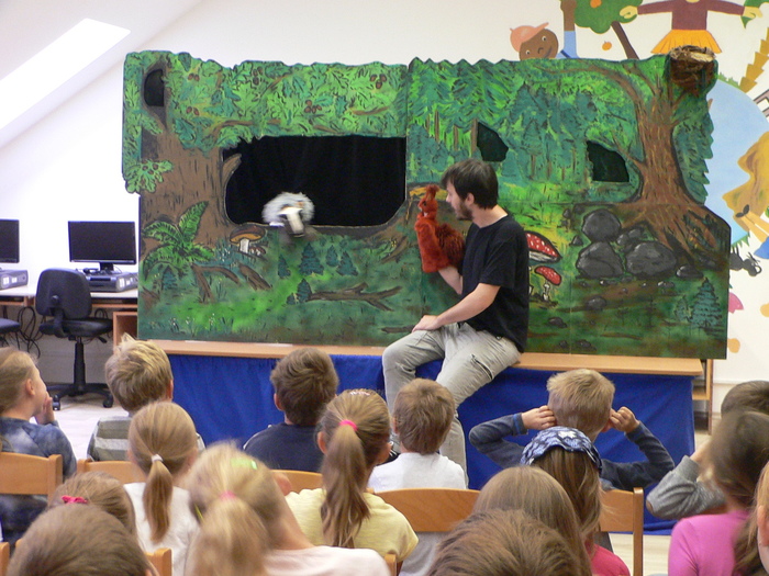 Hned na začátku školního roku přijelo do naší školy divadlo s představením Veverka Zrzečka. Děti čekaly tři zajímavé příběhy, do kterých se děti také zapojovaly a pomáhaly veverce.