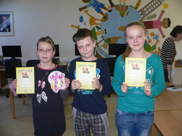 - kategorie – 4. – 5. třída: 1. místo – Ester Petresová, 2. místo – Filip Němec, 3. místo – Veronika Míčová