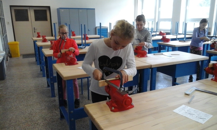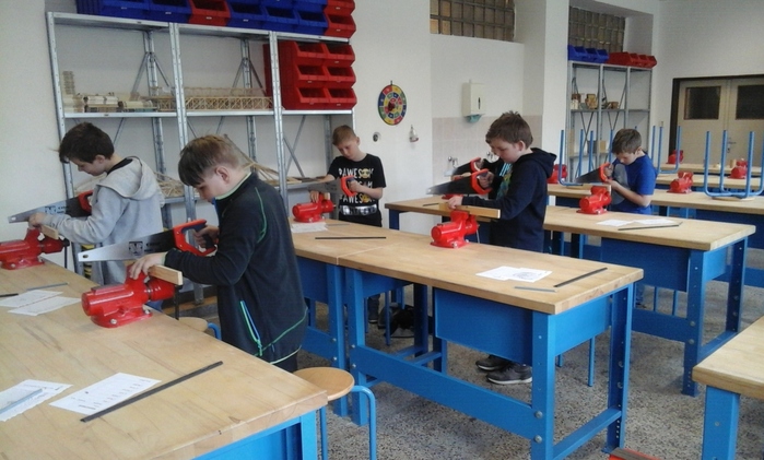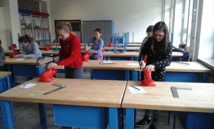 Žáci páté třídy opět navštívili ZŠ v Rájci. Tentokrát pro ně byla připravena tvořivá práce v keramické dílně, kde si z keramiky vyrobili jarní motivy, a také se podívali do dílen pracovních činností, kde si vyzkoušeli vrtání, řezání, poznávání nářadí a zatloukání hřebíků.